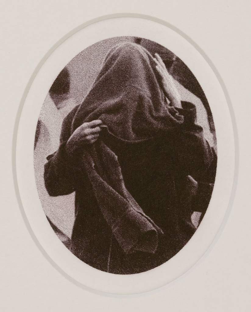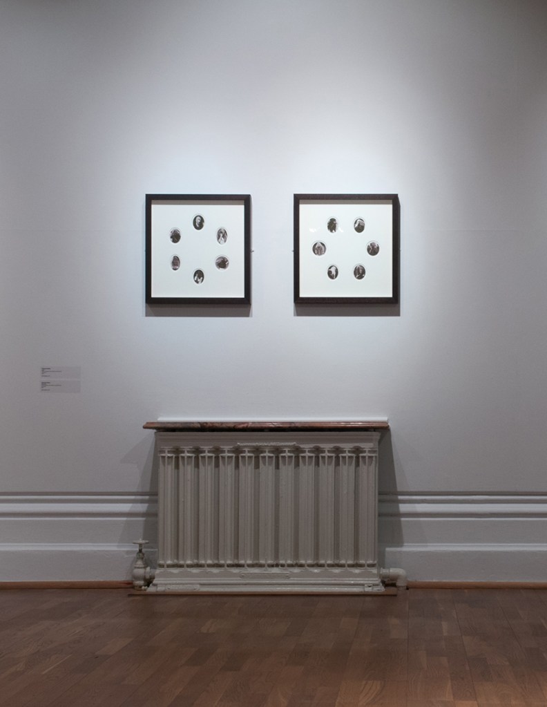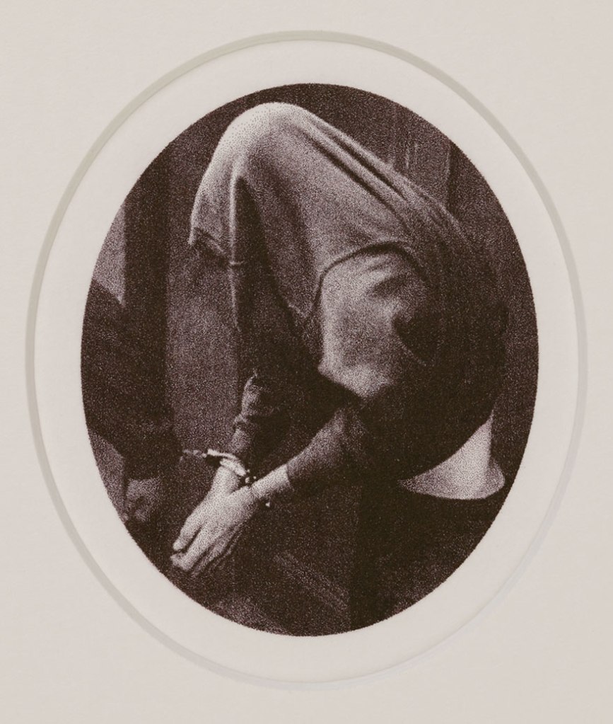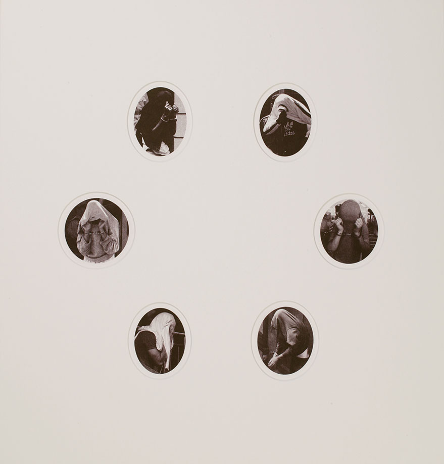 These miniature portraits were made from ‘found’ Googled photographs of celebrities and criminals covering themselves. Having concealed their faces from our gaze the unknown celebrities become tragic victims while the unknown criminals become faceless monsters on to which we project our fears.